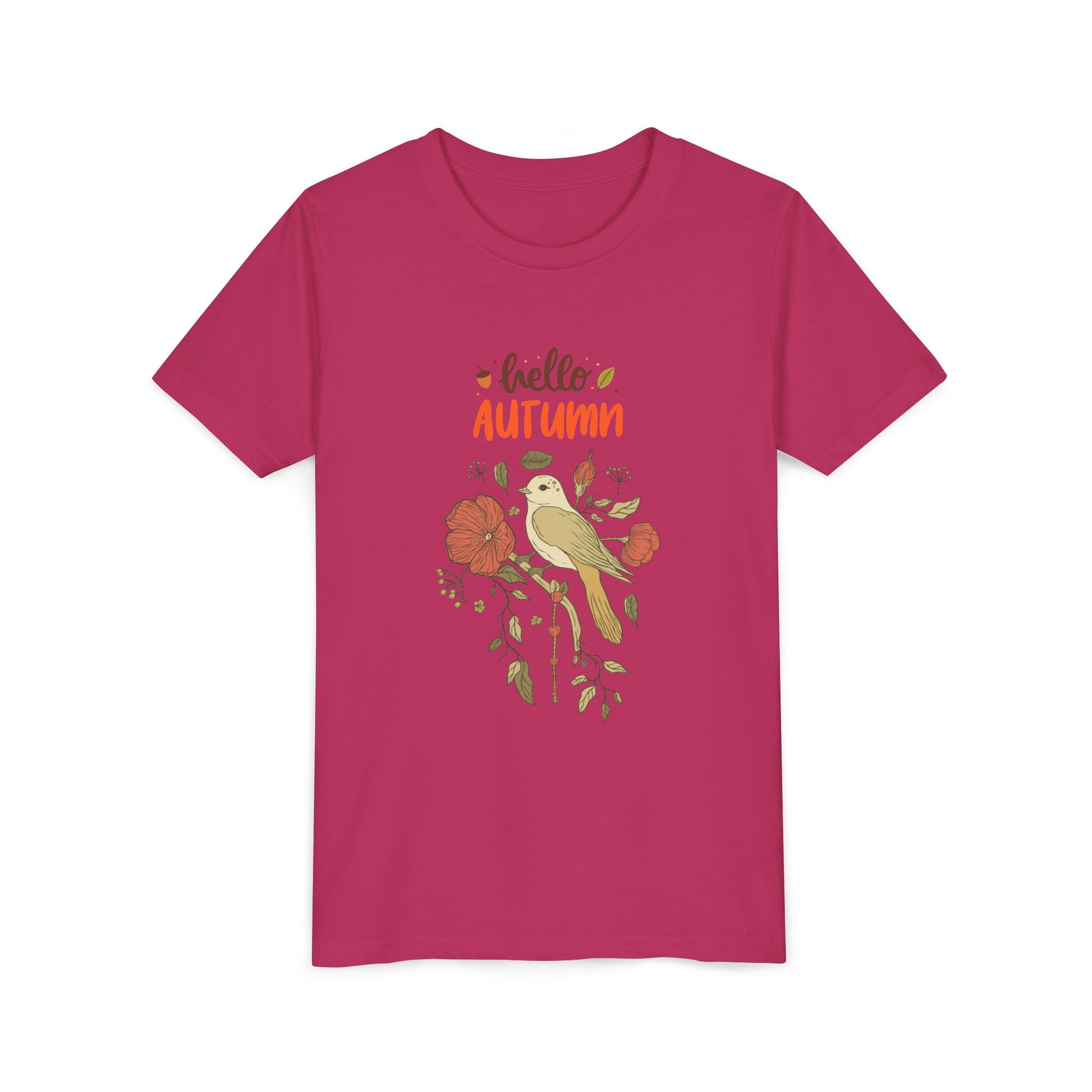 Introducing a delightful Youth Short Sleeve Tee that perfectly embodies the spirit of the autumn season. With its charming design featuring a whimsical bird and vibrant floral elements, this tee sets a playful yet cozy vibe for kids. It’s an ideal choice for everyday wear, school events, or casual outings. The soft, breathable fabric ensures comfort, making it suitable for all-day adventures. Perfect for young nature lovers or little artists, this tee is a fantastic gift for birthdays, back-to-school, or fall celebrations. Whether layered for a chilly day or worn on its own, it’s a versatile wardrobe staple that adds a touch of seasonal fun to any outfit!